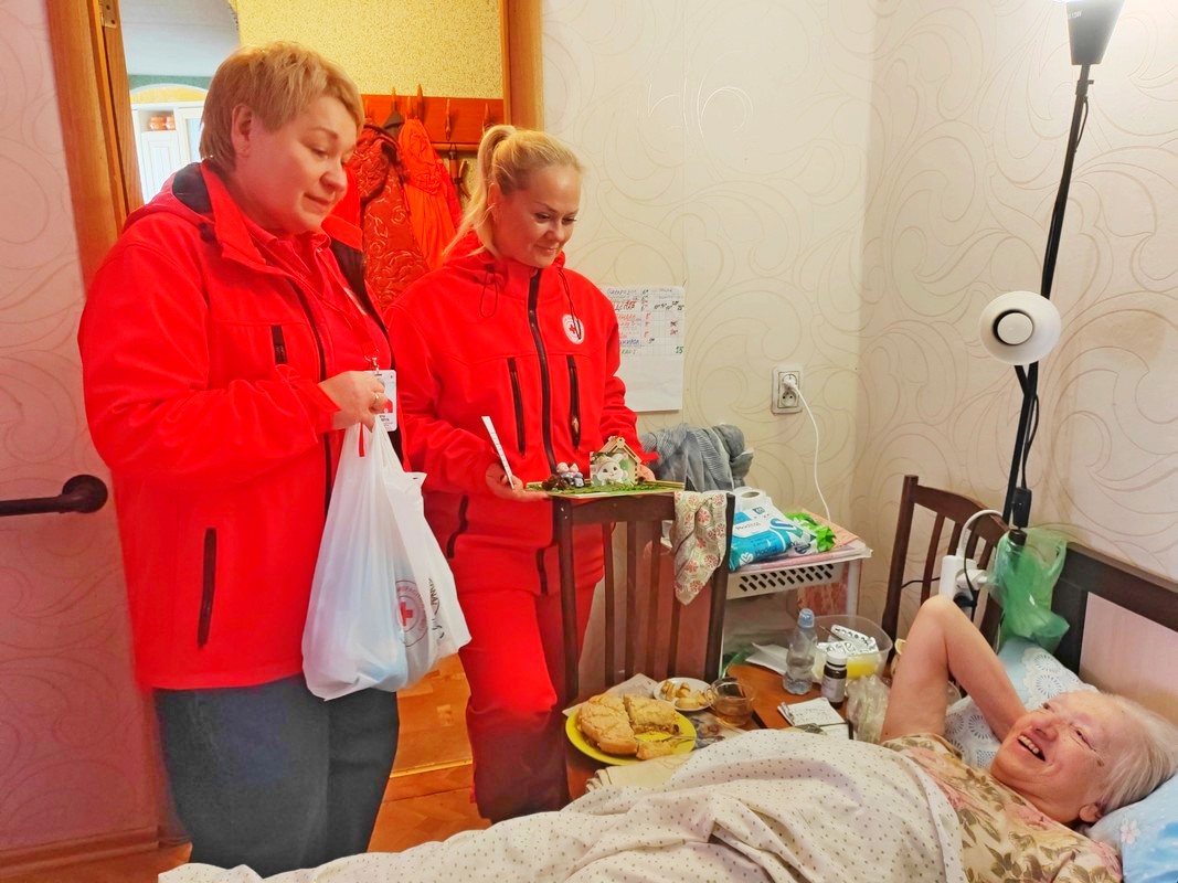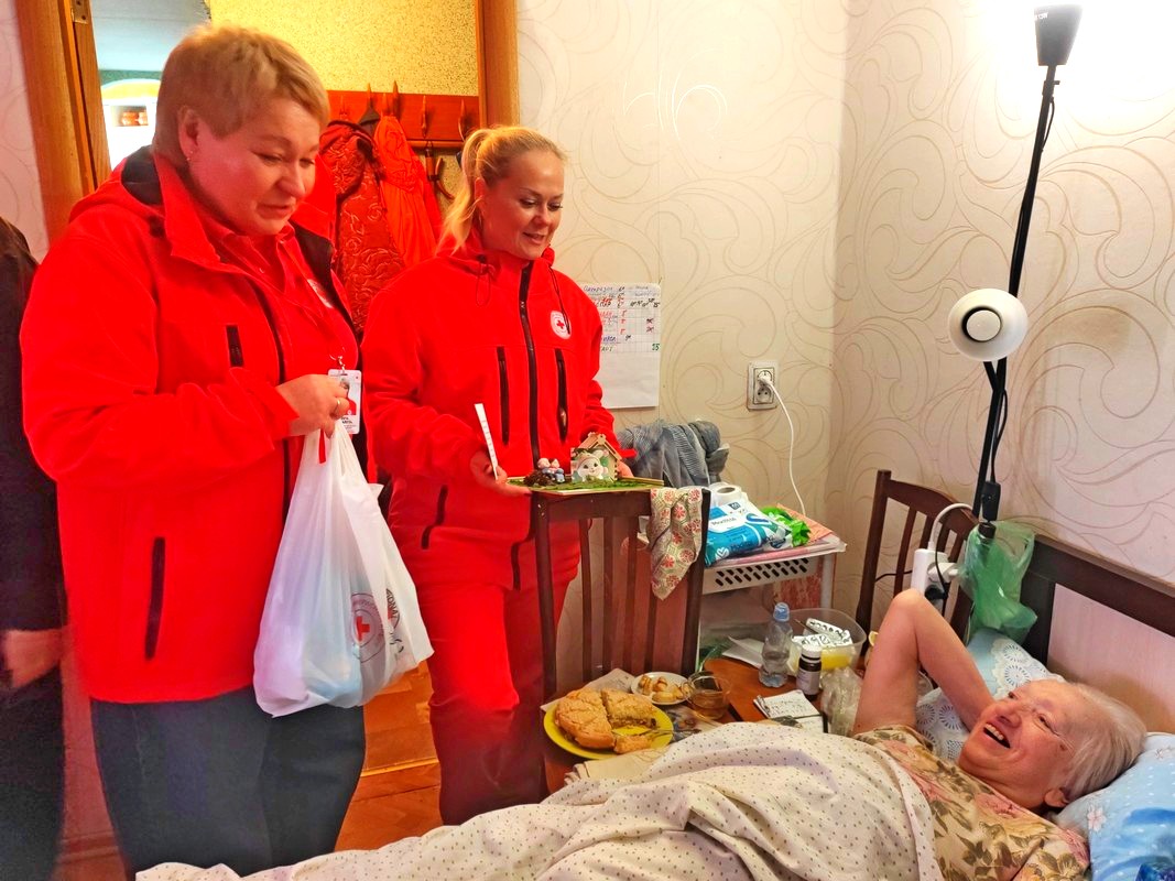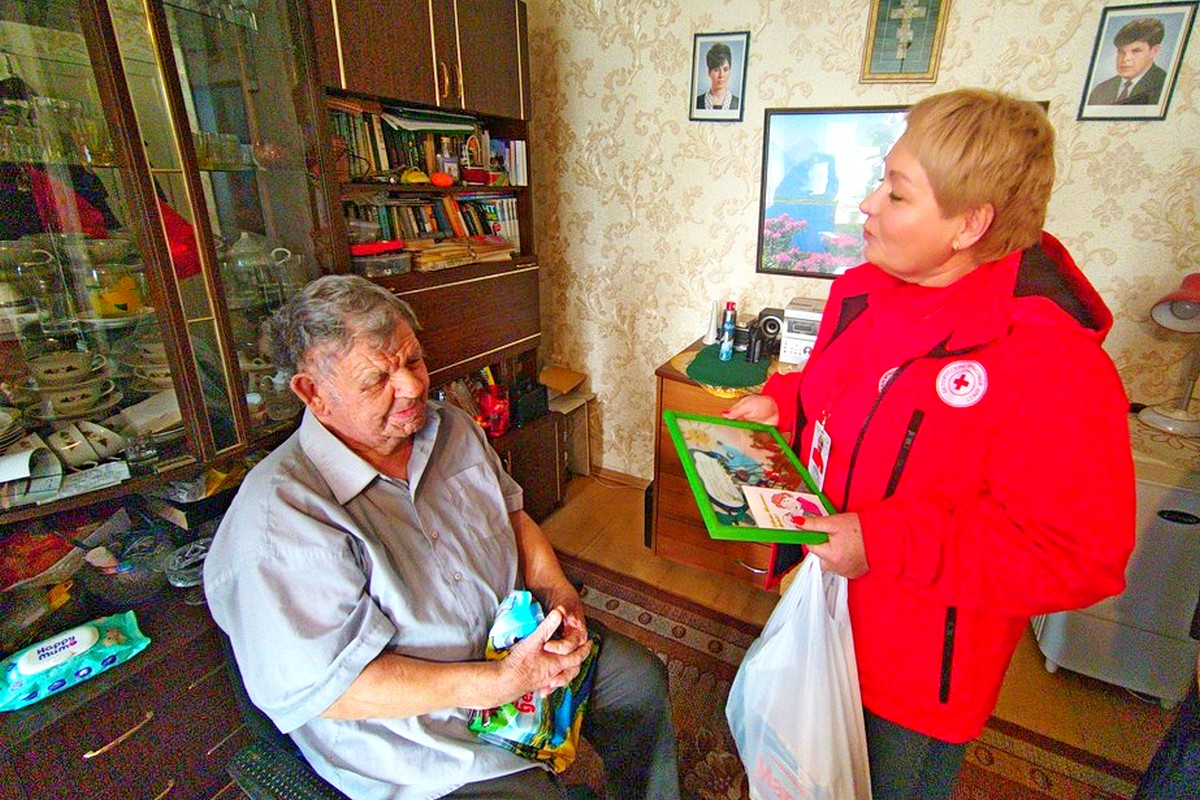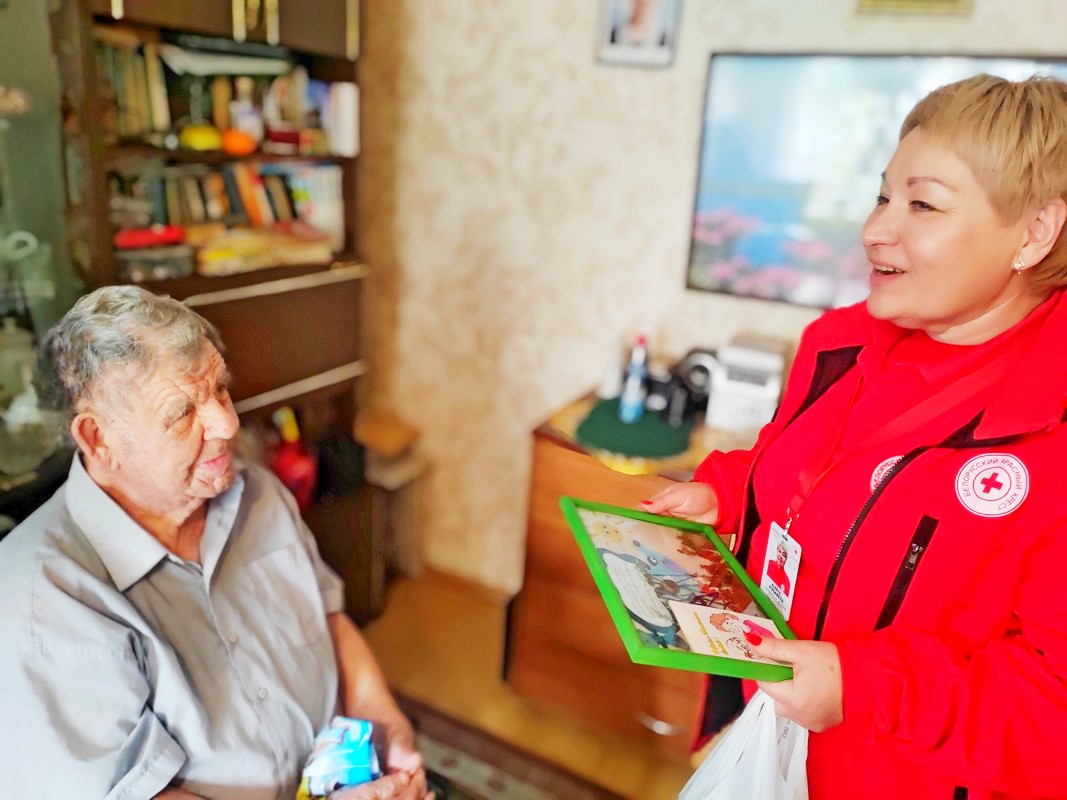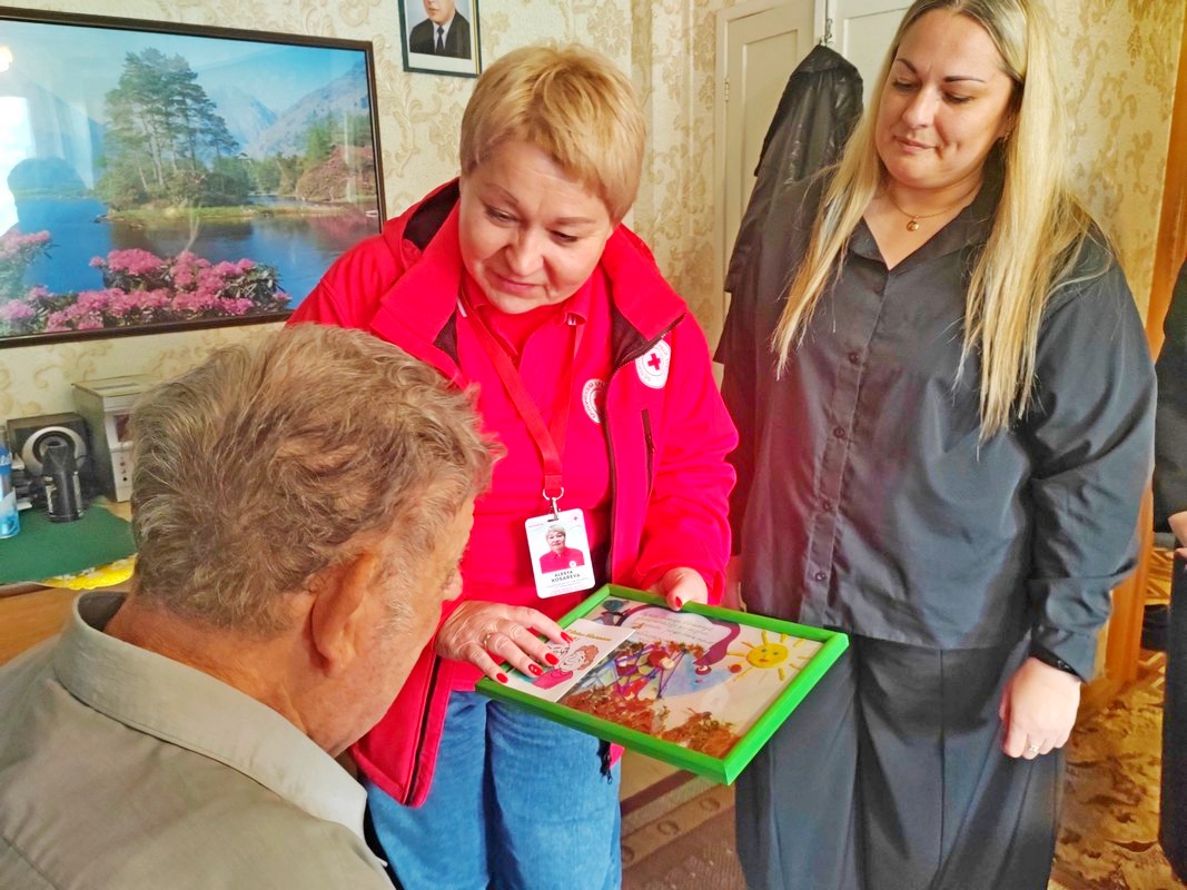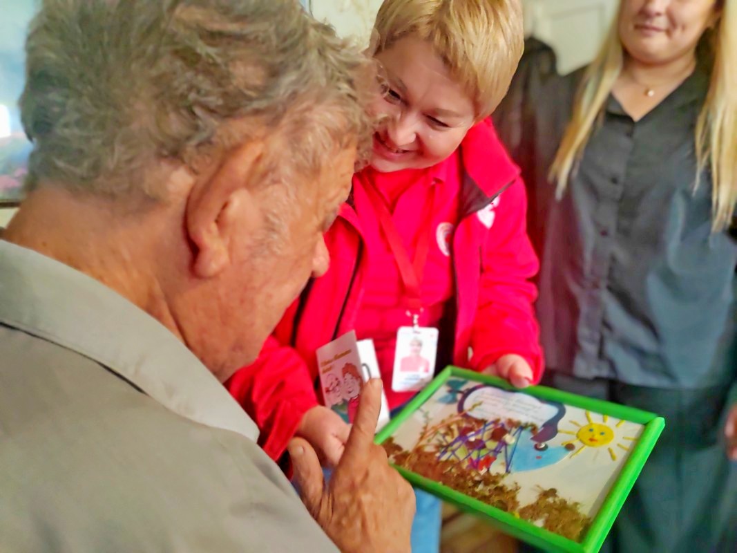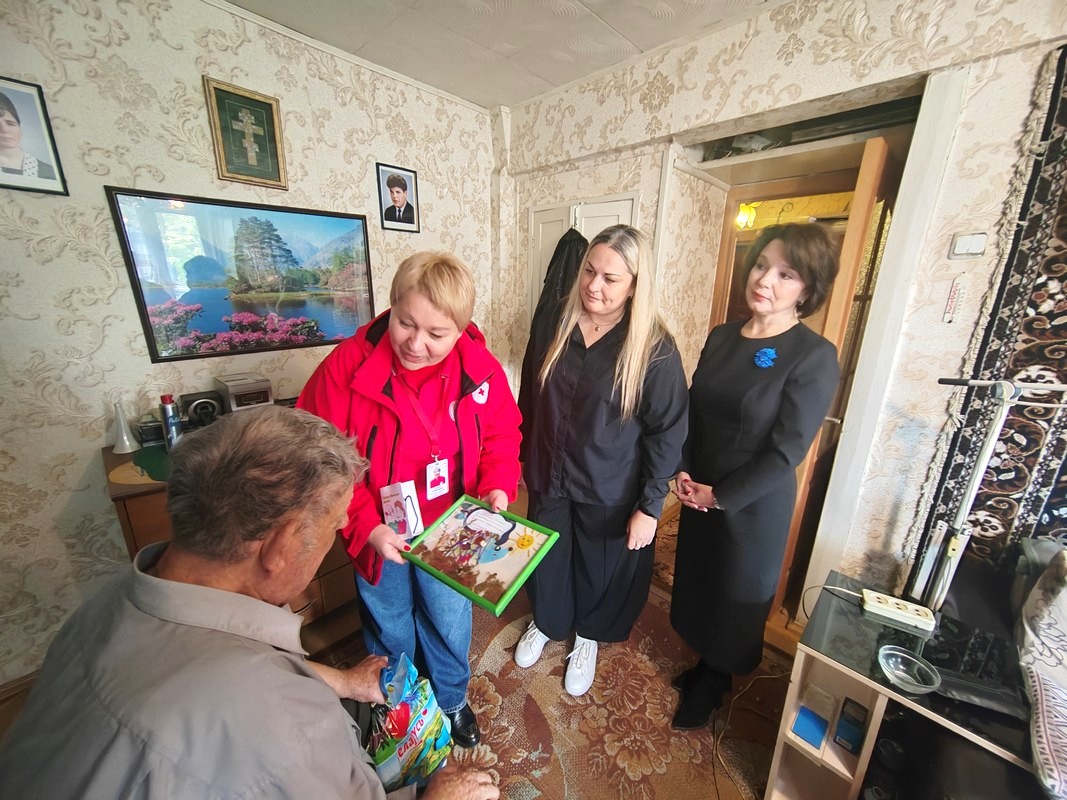 Поздравление пожилых граждан на дому (в рамках Дня пожилого человека) совместно с обществом Красного Креста (1.10.2025)