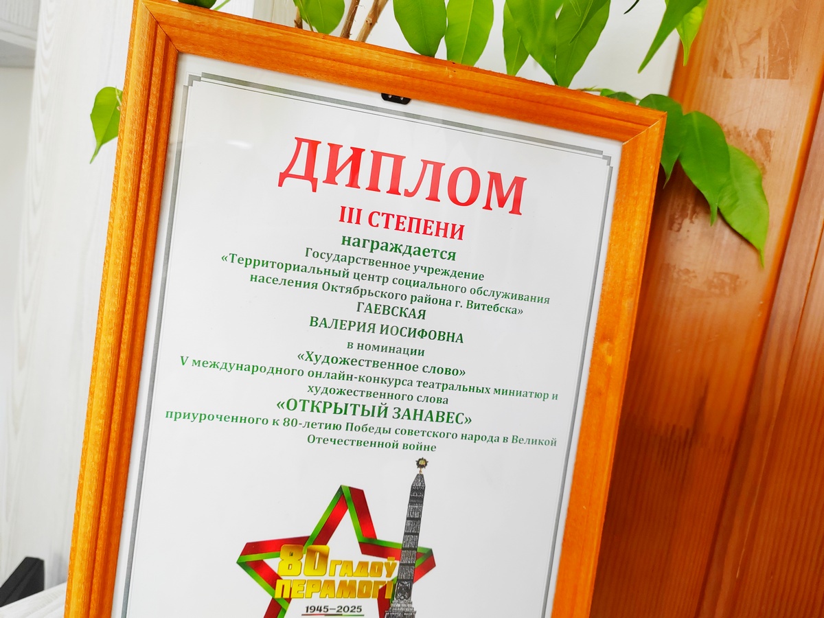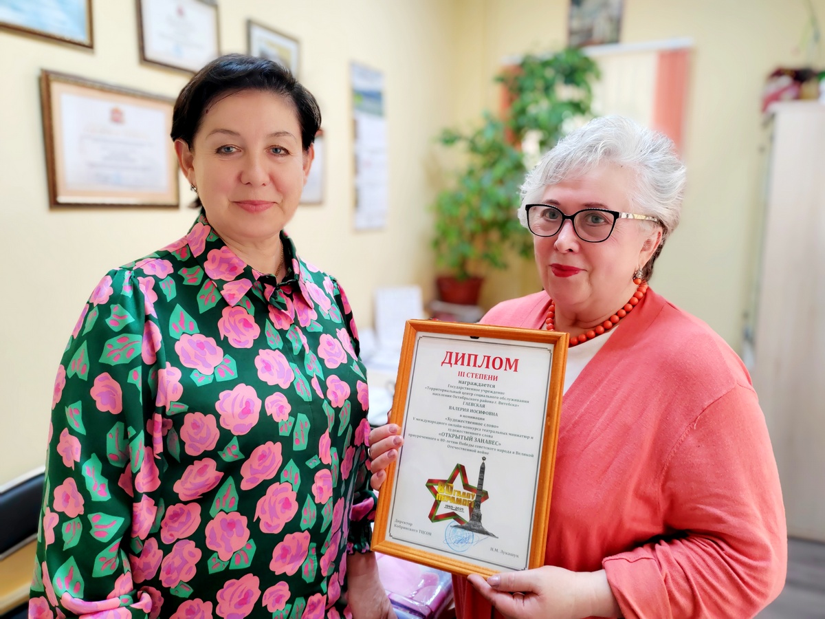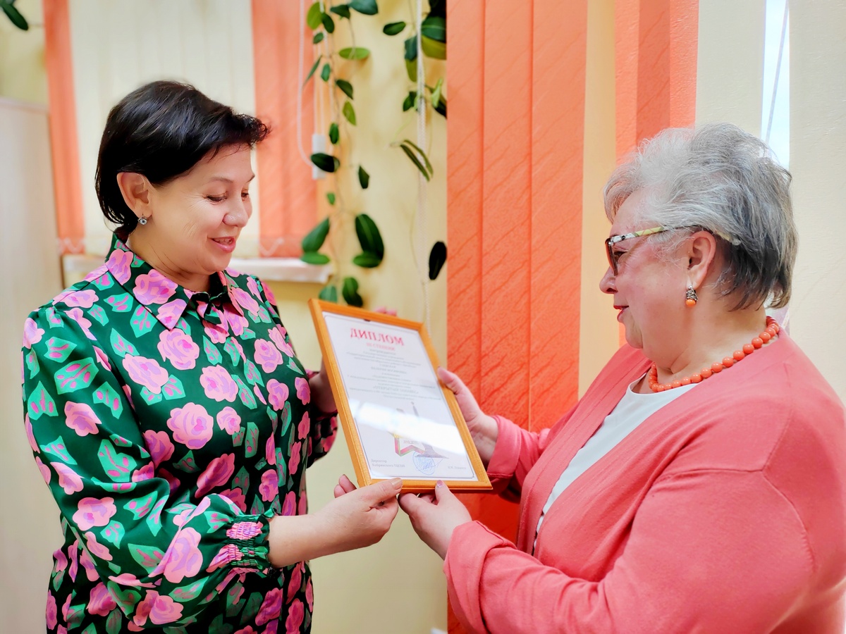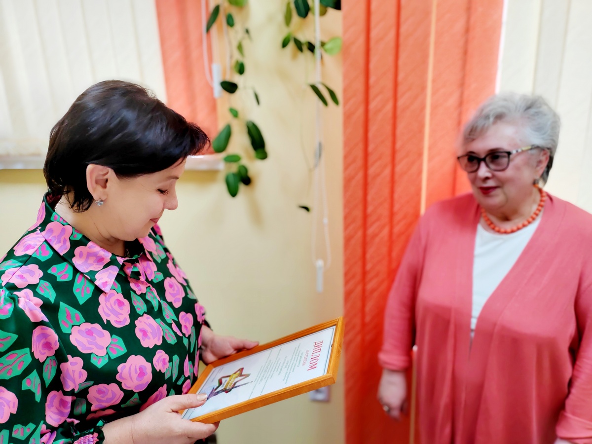 Вручение награды за победу в конкурсе стихов волонтеру отделения для пожилых граждан 03.06.2025